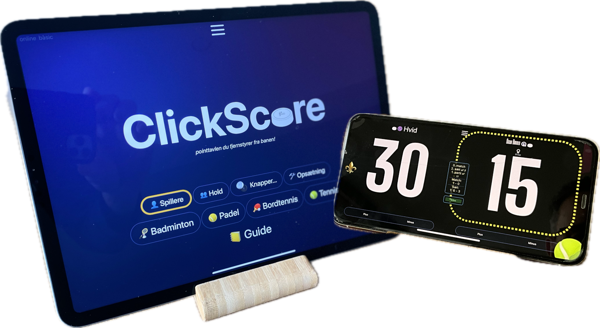 ClickScore er pointavlen på sidelinjen, der kan betjenes trådløst med AppleWatch eller Bluetooth-smartknapper direkte fra banen. Den gør det muligt for to hold at holde nøjagtigt styr på scoren i realtid og uden behov for hjælp udefra: